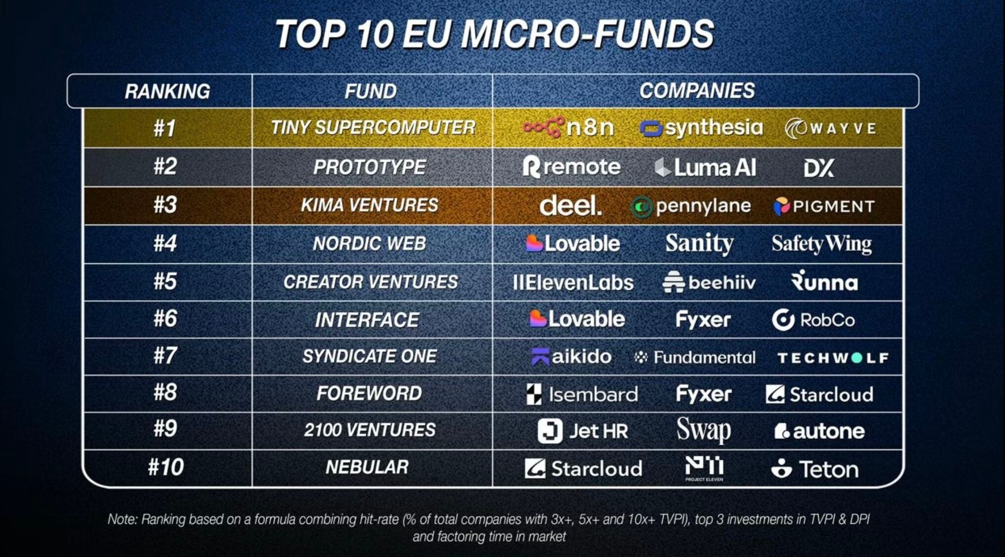 Alexandre Dewez from 20VC has ranked the top Micro-Funds in Europe. These funds are all:
